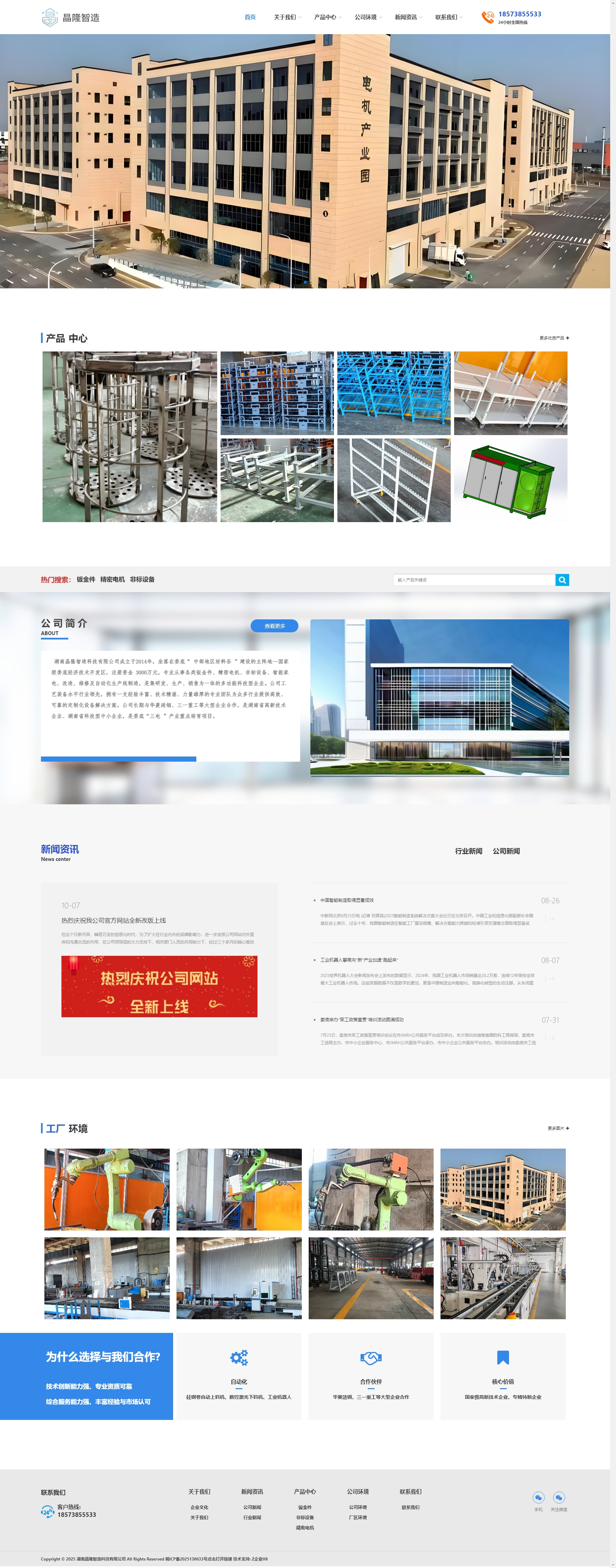 湖南晶隆智造科技有限公司成立于2014年,坐落在娄底“ 中部地区材料谷 ”建设的主阵地--国家级娄底经济技术开发区,注册资金 3000万元,专业从事各类钣金件、精密电机、非标设备、智能家电、改造、维修及自动化生产线制造,是集研发、生产、销售为一体的多功能科技型企业。公司工艺装备水平行业领先,拥有一支经验丰富、技术精湛、力量雄厚的专业团队为众多行业提供高效、可靠的定制化设备解决方案。公司长期与华菱涟钢、三一重工等大型企业合作,是湖南省高新技术企业、湖南省科技型中小企业,是娄底“三电 ”产业重点培育项目。